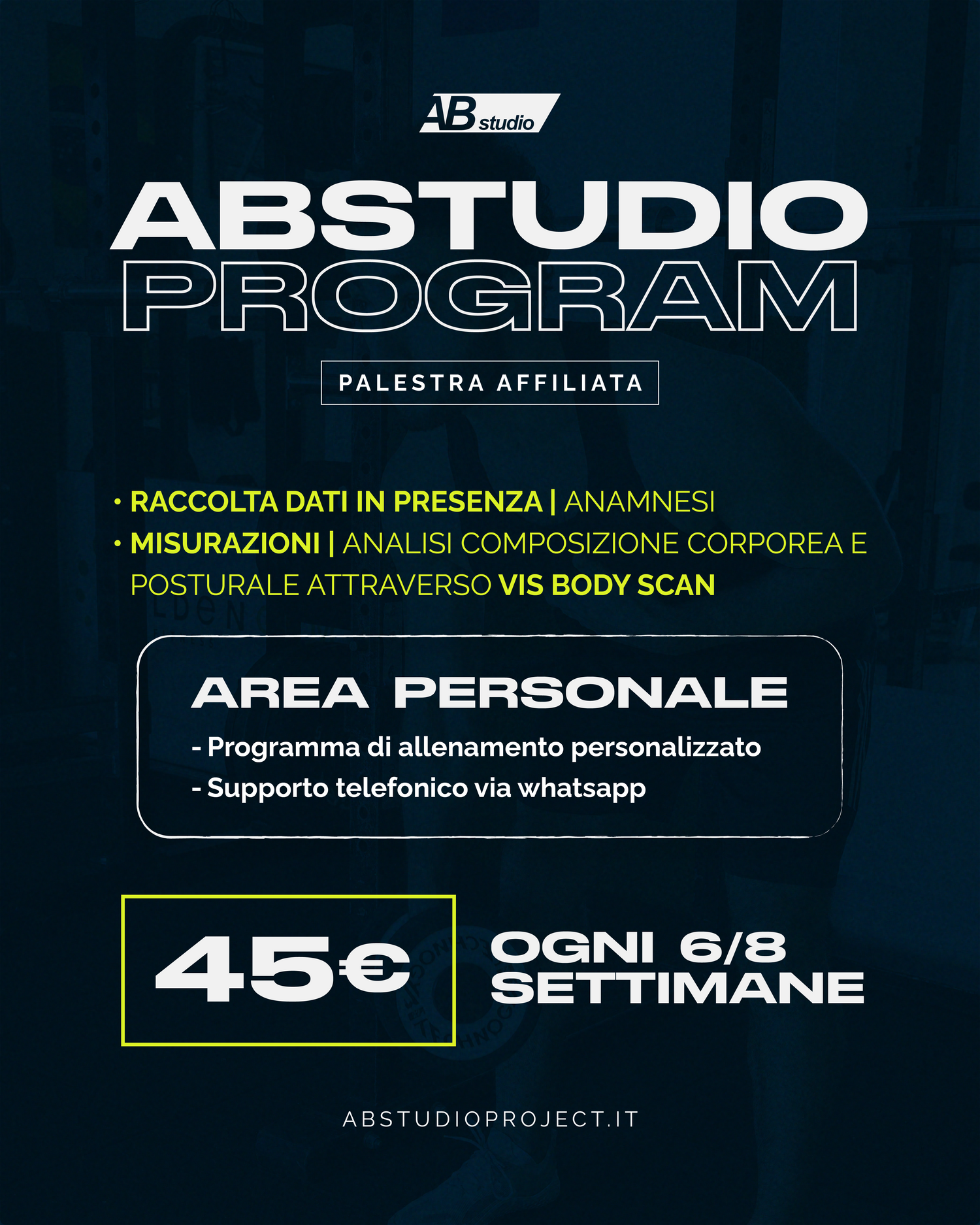 Lavoriamo in maniera personalizzata, ogni cliente è diverso da un altro ed ognuno è curato con la massima attenzione ed esclusività. Cuciamo su misura una programmazione ad hoc in base ai vostri obbiettivi.